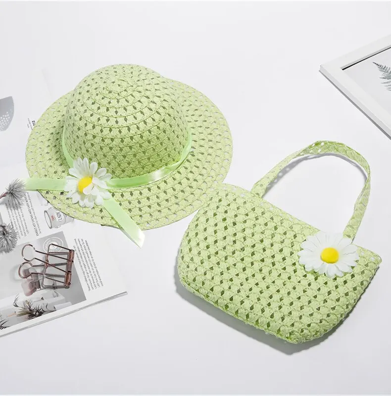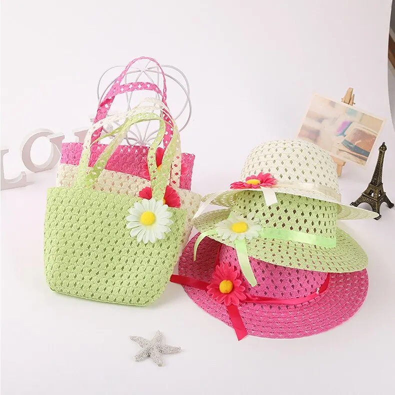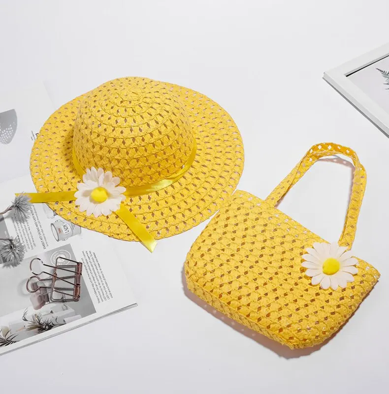 2. Cute design: straw hats and straw woven handbags are designed with colorful flowers