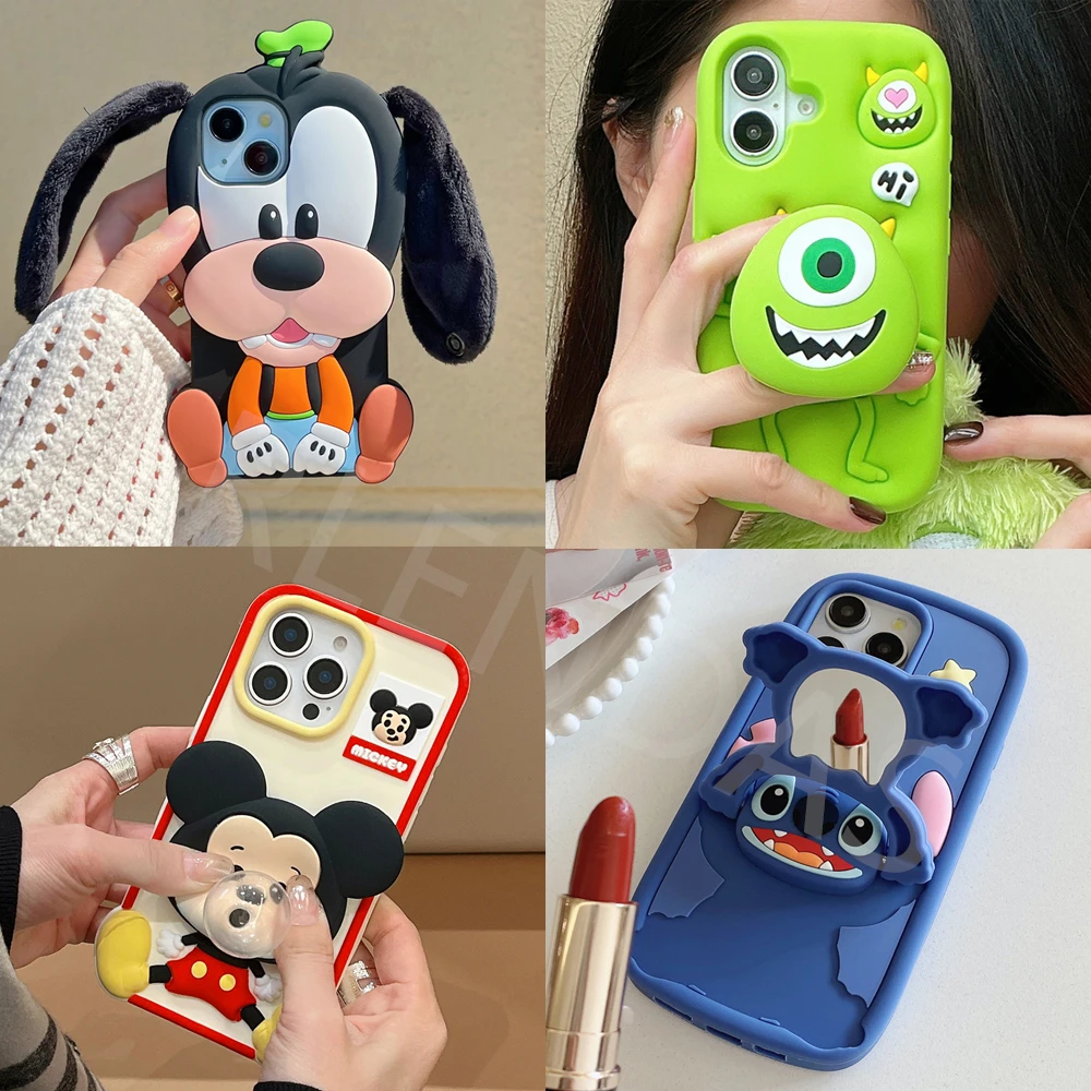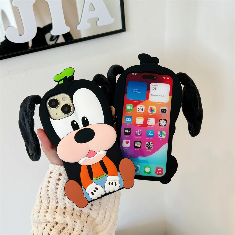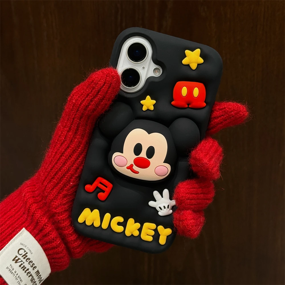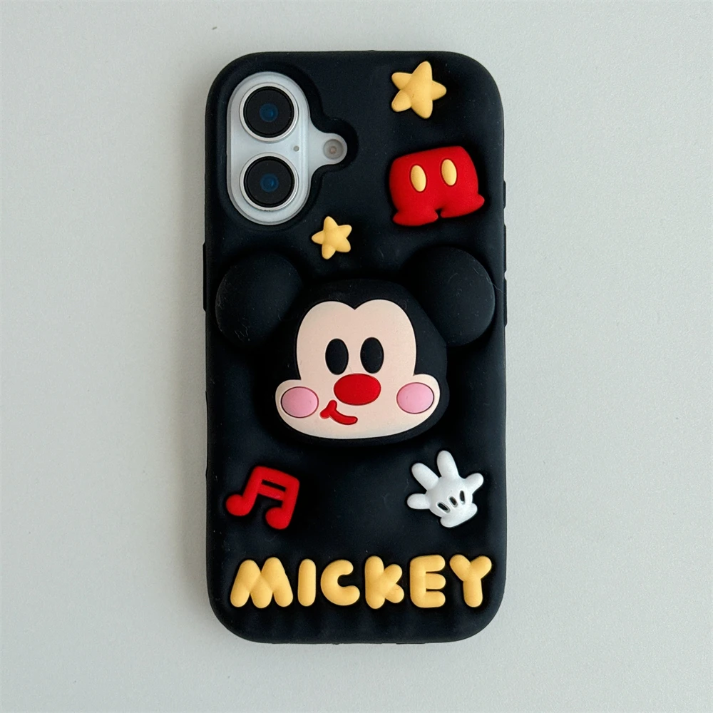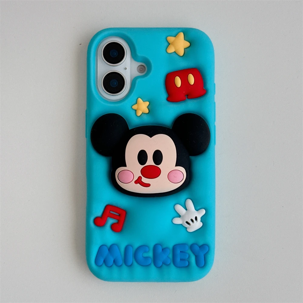 Cute 3D Cartoon Phone Case For iPhone 16 15 13 14 12 Pro Max 11 16plus Lovely Soft Silicone Back Cover Goofy Mickey Stitch