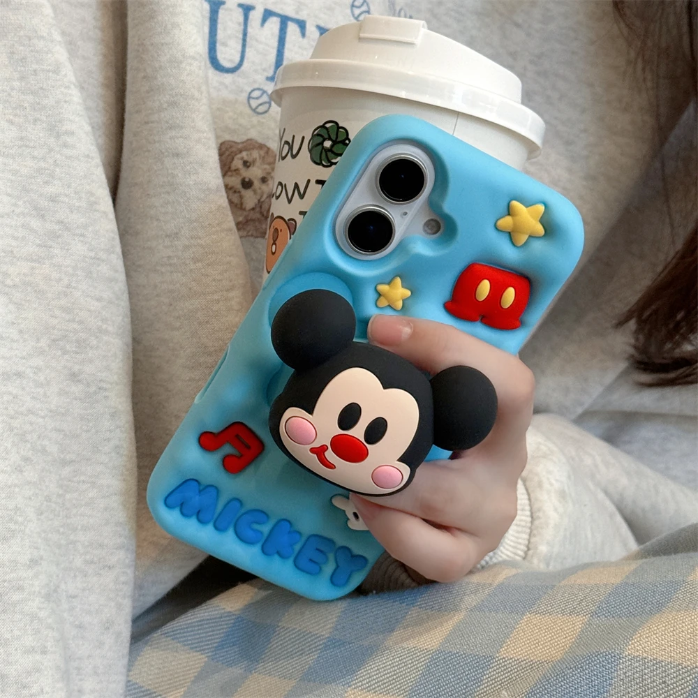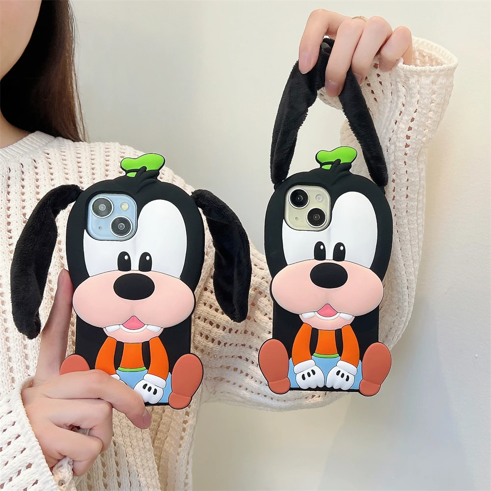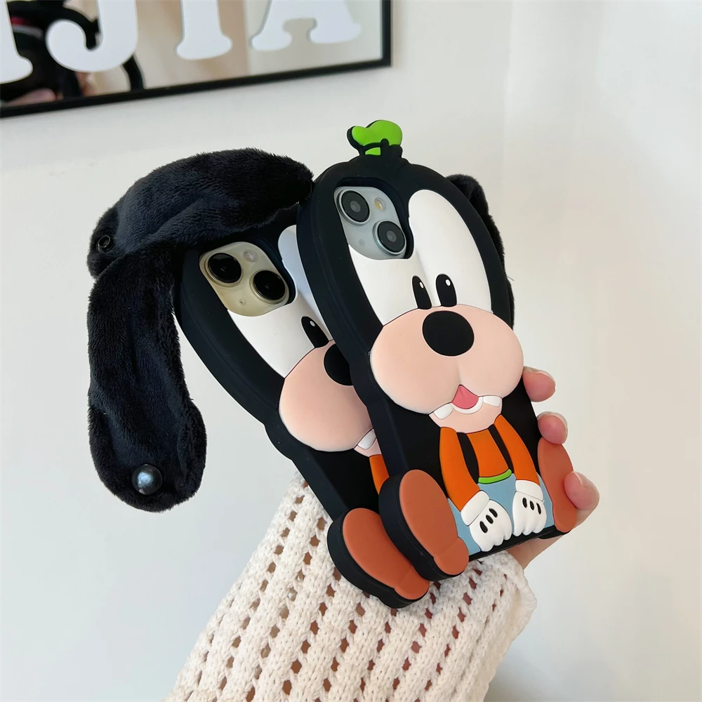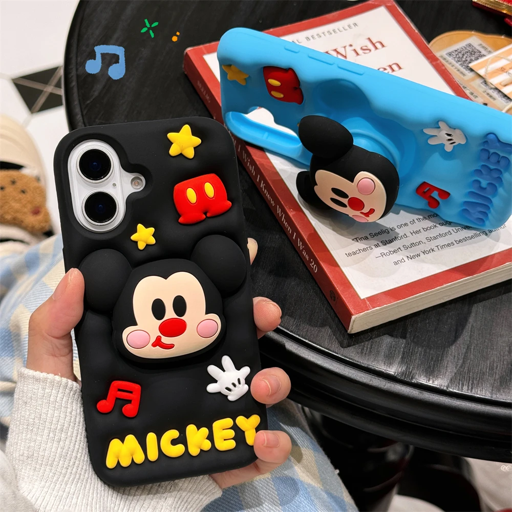 Cute 3D Cartoon Phone Case For iPhone 16 15 13 14 12 Pro Max 11 16plus Lovely Soft Silicone Back Cover Goofy Mickey Stitch
