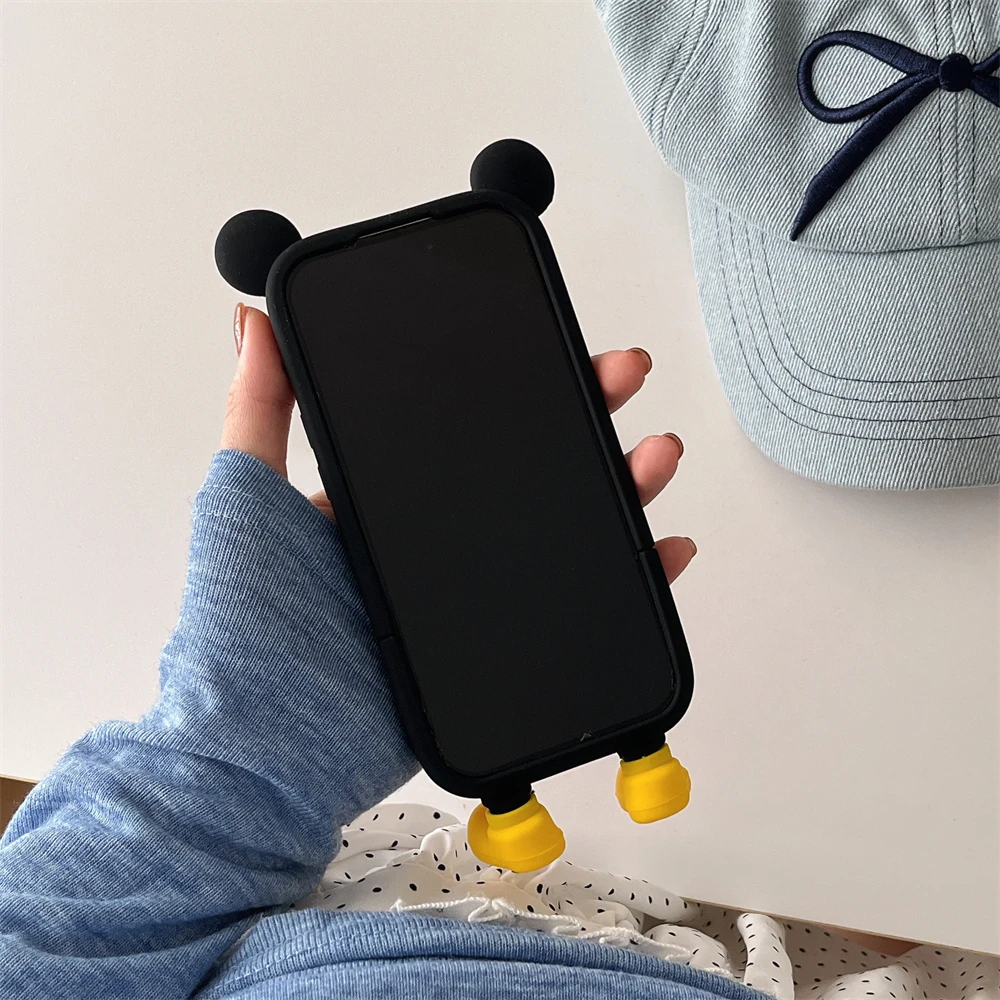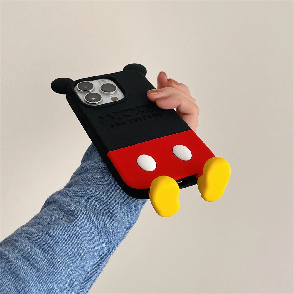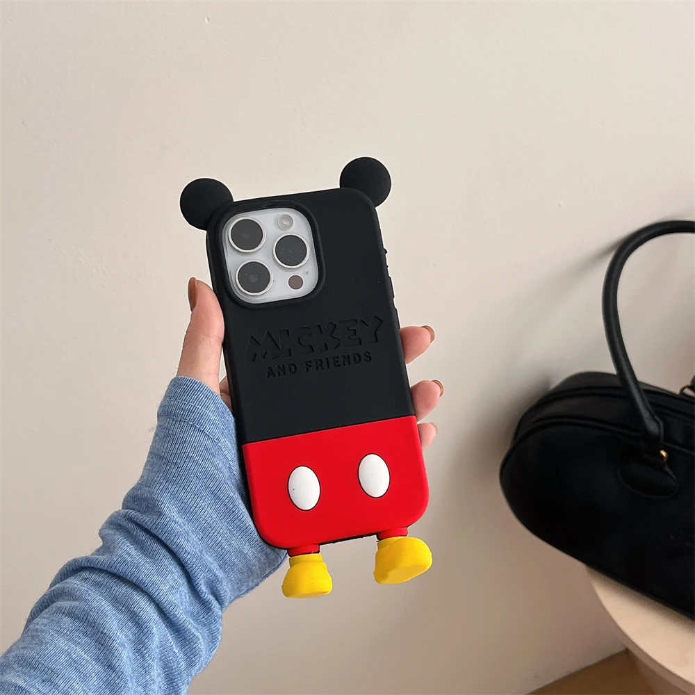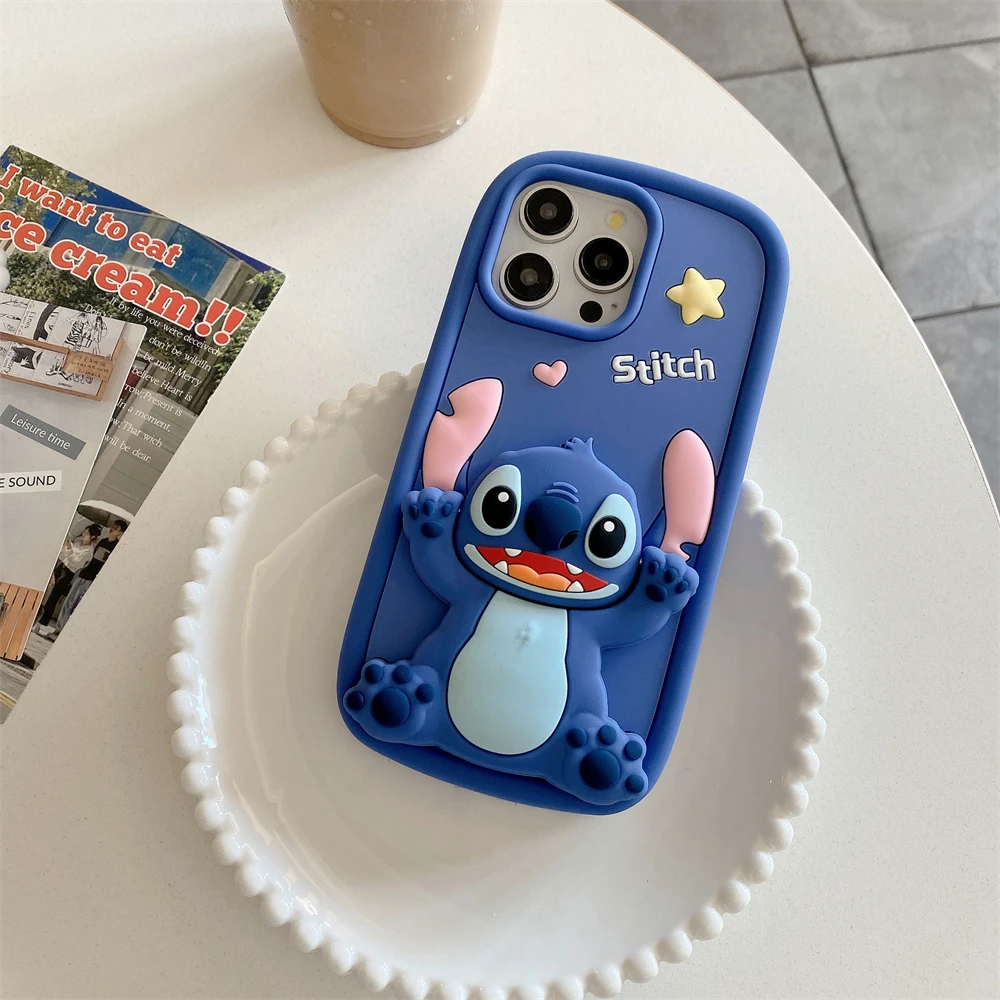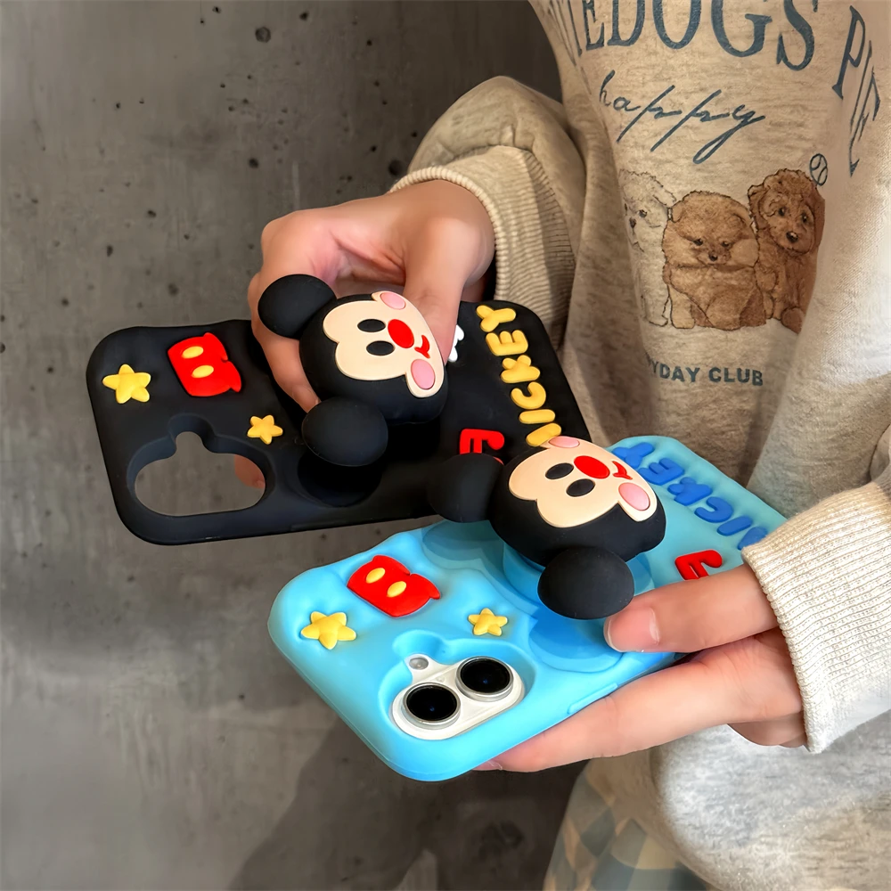 Cute 3D Cartoon Phone Case For iPhone 16 15 13 14 12 Pro Max 11 16plus Lovely Soft Silicone Back Cover Goofy Mickey Stitch