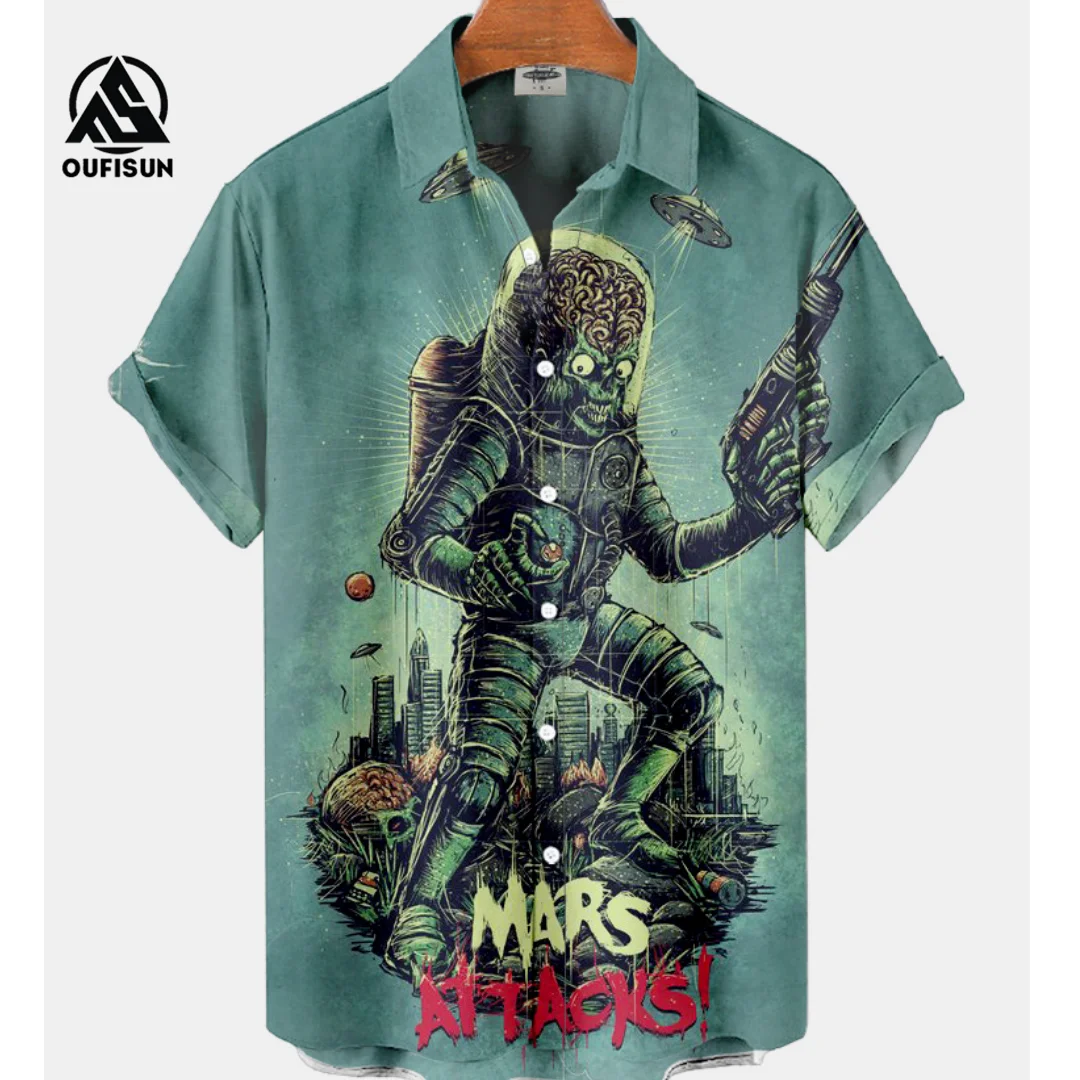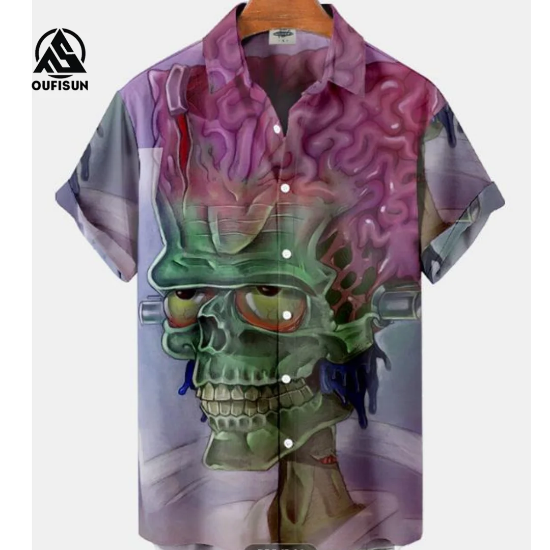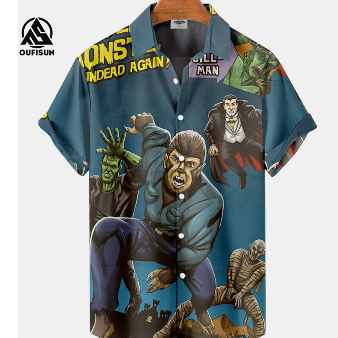 Movie Frankenstein Print Men’s Short Sleeve Shirt Street Trend Summer Fashion Men’s Shirt Oversized Tops