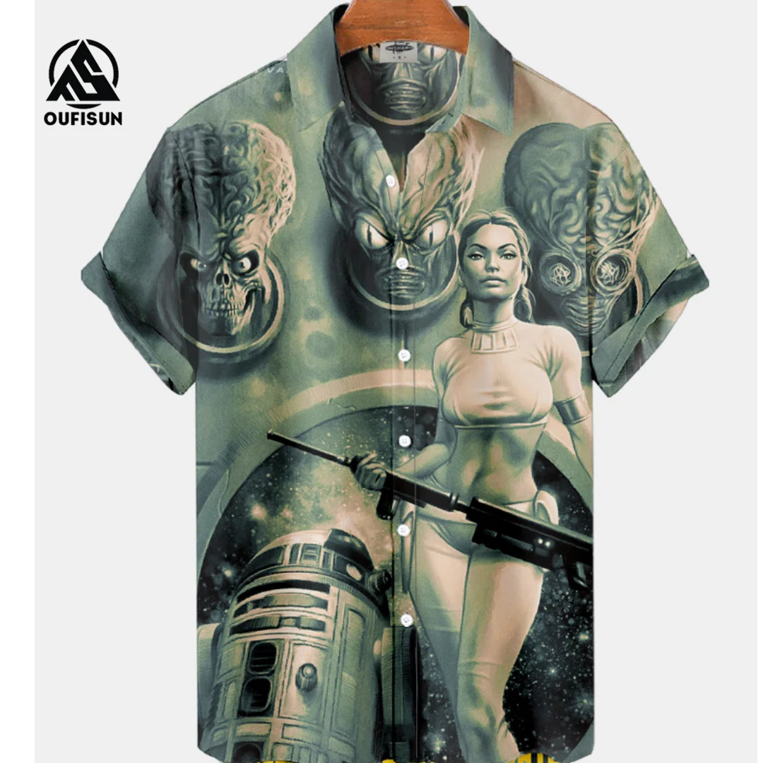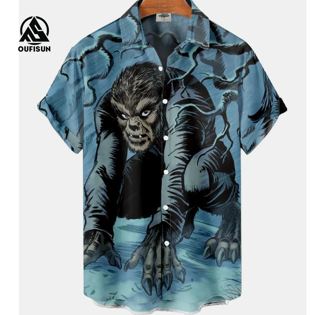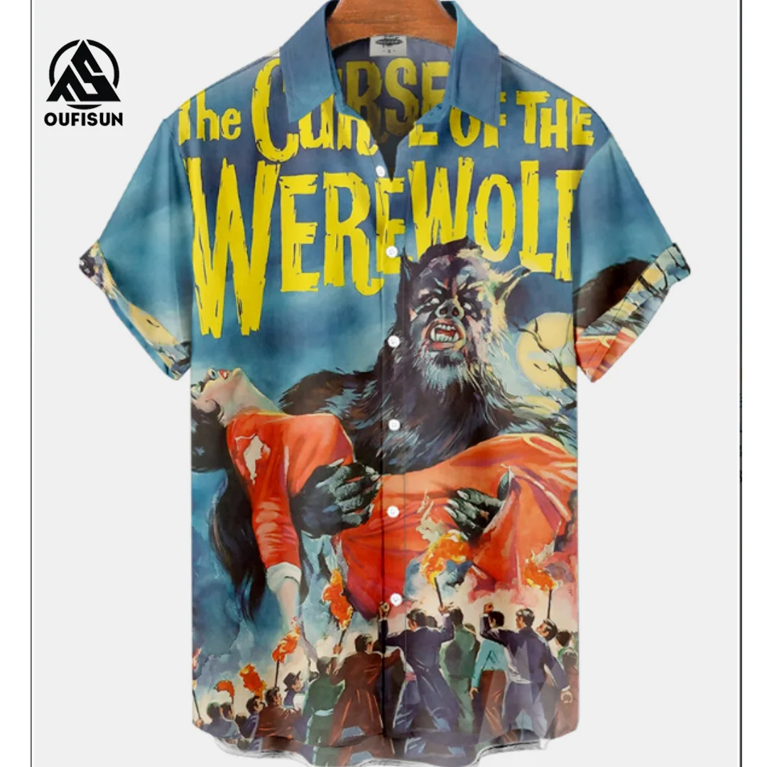 Movie Frankenstein Print Men’s Short Sleeve Shirt Street Trend Summer Fashion Men’s Shirt Oversized Tops