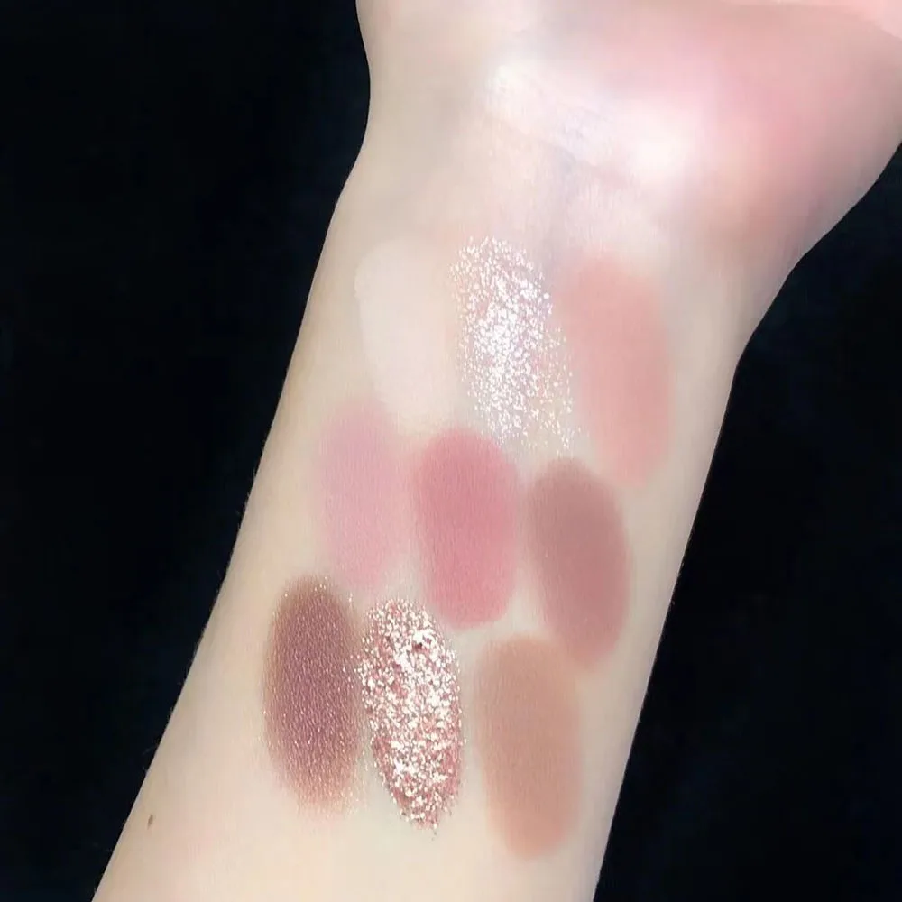 New Nine-color Eyeshadow Palette Rose Pink Color Pearly Matte Glitter Eyeshadow Shiny Eye Shadow Long-lasting Eye Makeup